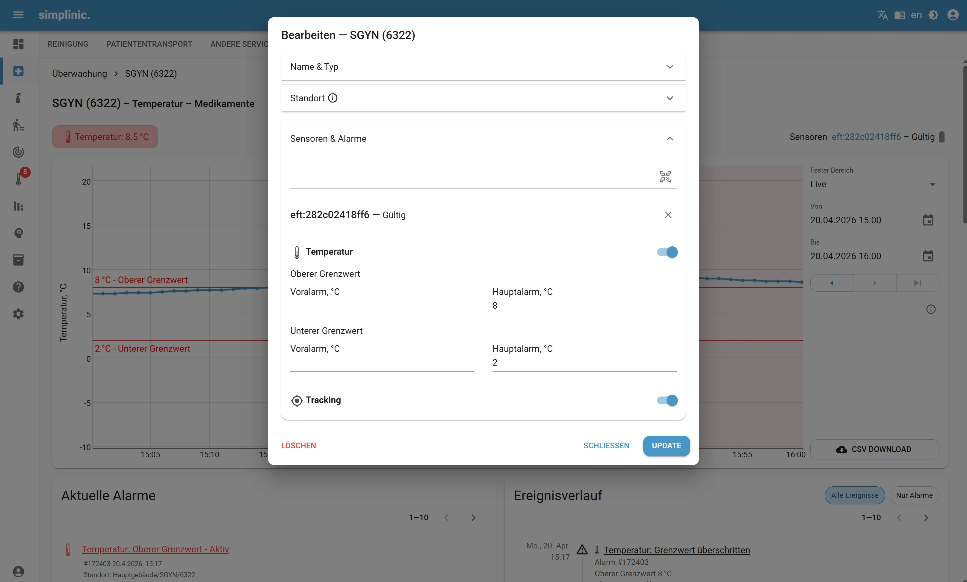 simplinic überwacht Kühlschränke und temperatursensible Bereiche fortlaufend und dokumentiert Abweichungen automatisch.